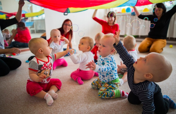 Kurz je vhodný pro děti od cca 10/12 do 18 měsíců věku - děti lezoucí/chodící.